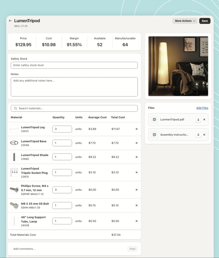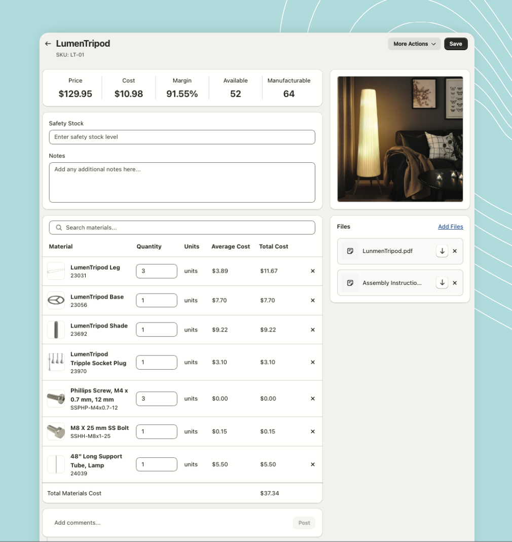 Know exactly what every product costs — including materials, labor, and overhead — with real-time margin visibility.