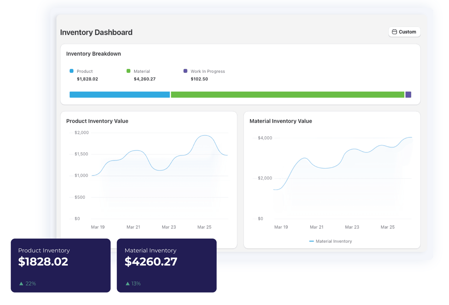 Automatically calculate accurate costs for finished products using live material, labor, and purchase data — no spreadsheets needed.